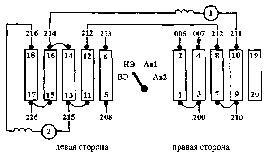 - в обеих секциях переключатели 200 перевести в положение «ВЭ» (крайнее левое - си. рис. 134);
