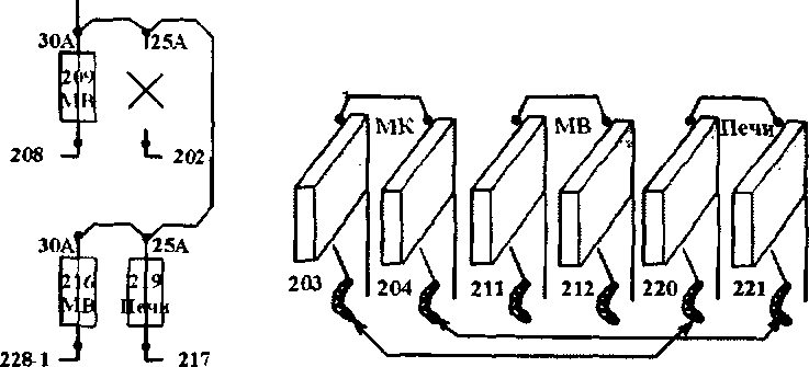 - в неисправной секции соединить перемычкой шунты контакторов МВ 211 - 212;