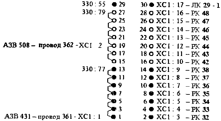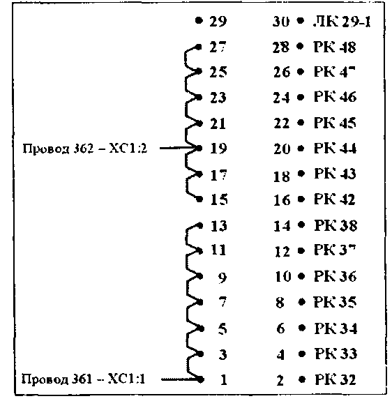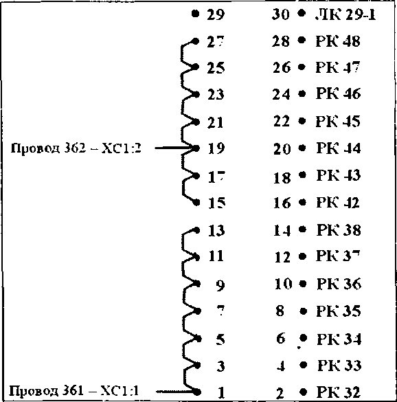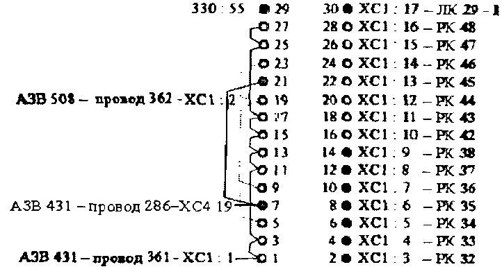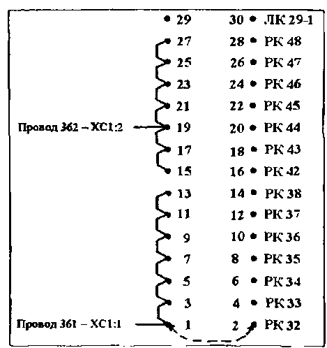 Выход из положения 1: - отнять от Л К 29-1 кабели 0081 и 0091; - отнятые кабели соединить вместе и заизолировать; - следовать на всех соединениях. |