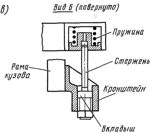 Устойчивость кузова электровоза относительно тележек в поперечном направлении дополнительно обеспечивается боковыми опорами (рис. 108, в).