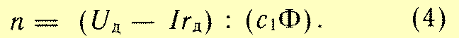 где С1 — коэффициент, учитывающий конструктивные особенности двигателя (число пар полюсов, число активных проводников обмотки якоря и число параллельных ветвей обмотки якоря) и размерности величин, входящих в формулу; Ф — магнитный поток; n — частота вращения якоря двигателя. Тогда