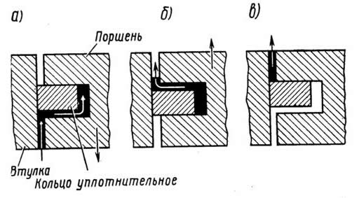 Рис. 46. Схема насосного действия уплотнительных колец