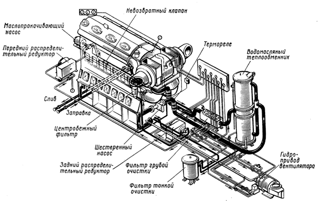 СХЕМА ВНЕШНЕЙ МАСЛЯНОЙ СИСТЕМЫ ДИЗЕЛЯ