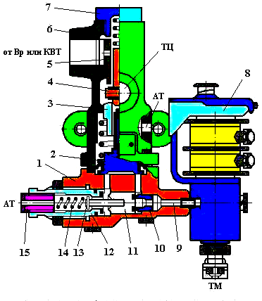 тормоза), к тормозному цилиндру (ТЦ) и атмосферный выход Ат1.