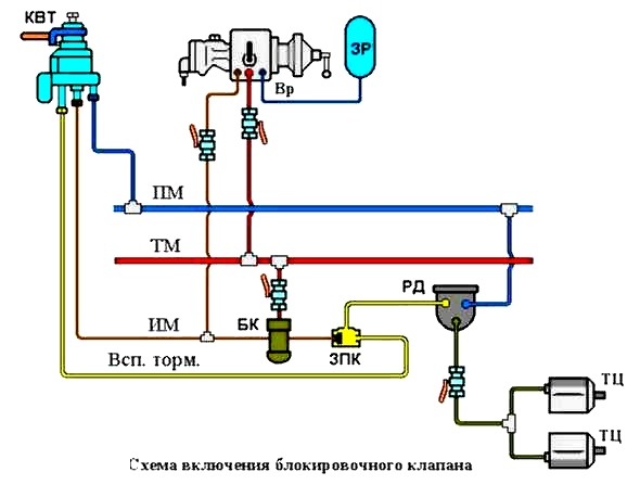 блокировочного клапана присоединяется к отводу тормозной магистрали (ТМ).