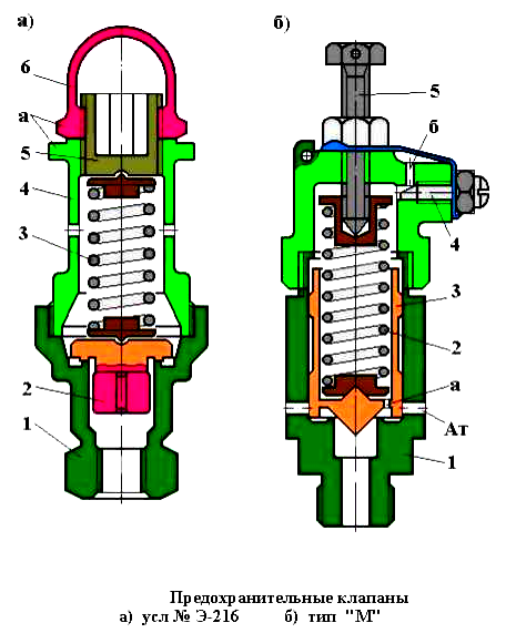 Предохранительные клапаны усл.№ 216 и усл.№ Э-216 конструктивно