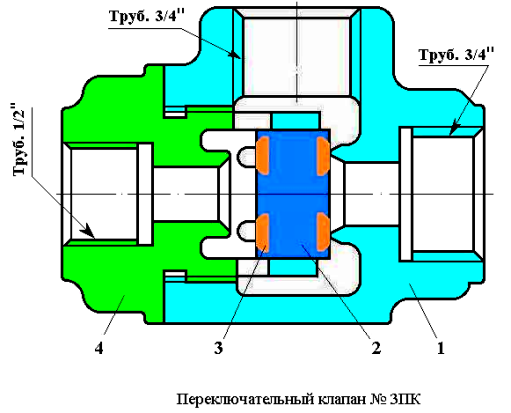 Переключательный клапан усл.№ ЗПК предназначен для автоматического