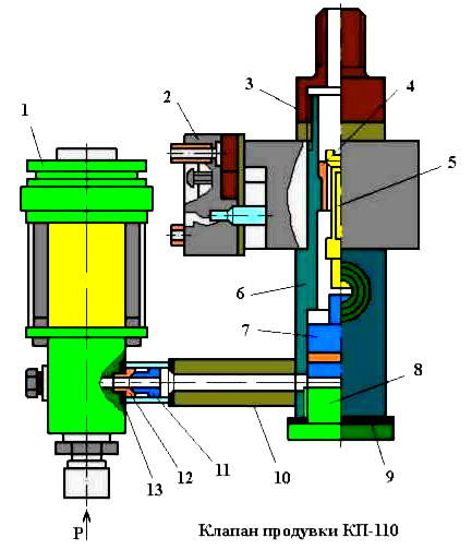 Клапан продувки КП-110-01 состоит из клапанной системы и