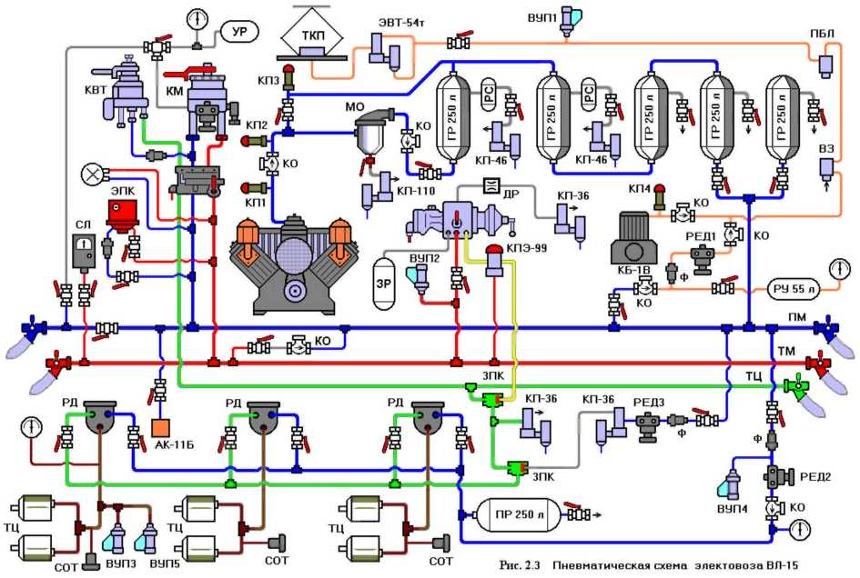 Схема тормозного оборудования электровоза ВЛ-15 Изображение Описание