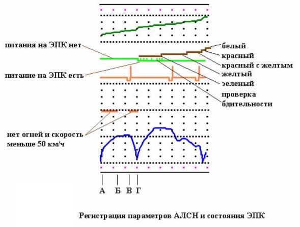 Регистрация параметров АЛСН и состояния ЭПК показано на рисунке. При наличии